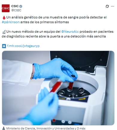 Investigadores del Instituto de Neurociencias (CSIC-UMH) han comprobado que un análisis genético de sangre podría identificar el párkinson antes de que aparezcan los primeros síntomas. El estudio, publicado en Neurotherapeutics, se probó en pacientes con diagnóstico reciente y demostró su potencial para mejorar la detección temprana y el seguimiento de la enfermedad.