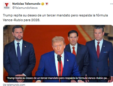 Durante su vuelo de Malasia a Tokio, el presidente de Estados Unidos, Donald Trump, afirmó que no planea postularse como vicepresidente en 2028, aunque no descartó buscar un tercer mandato presidencial.