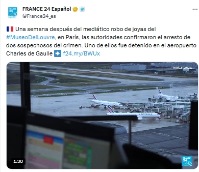La Fiscalía de la República francesa confirmó los dos primeros arrestos relacionados con el robo de joyas en el Museo del Louvre, ocurrido el 19 de octubre. Sin embargo, la fiscal Laure Beccuau criticó la divulgación prematura de la noticia, al considerar que podría perjudicar las investigaciones en curso.