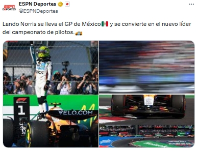 El británico Lando Norris (McLaren) se llevó la victoria en el Gran Premio de Ciudad de México, celebrado en el Autódromo Hermanos Rodríguez, y con ello asumió el liderato del campeonato mundial de Fórmula 1, superando por un punto a su compañero Oscar Piastri.