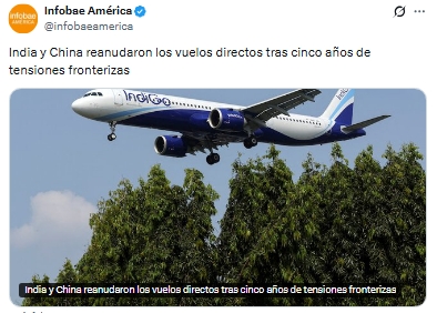 India y China restablecieron los vuelos directos tras cinco años sin conexión aérea, marcando un paso clave para el comercio y las relaciones diplomáticas entre las dos potencias asiáticas.