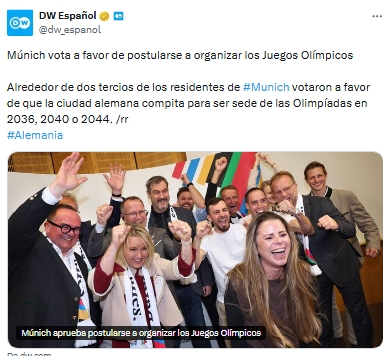 Aun así, la decisión final dependerá del Comité Olímpico Internacional (COI). Si se concreta, sería la segunda vez que Múnich alberga unos Juegos Olímpicos, tras los de 1972, los últimos realizados en territorio alemán.