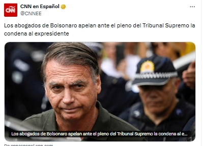 La defensa del líder ultraderechista presentó el recurso contra la sentencia condenatoria del Supremo Tribunal Federal (STF) este lunes, cuando venció el plazo para que los ocho condenados por golpismo entregaran las primeras apelaciones posibles, limitadas a cuestiones de forma y de redacción, pero no de mérito.