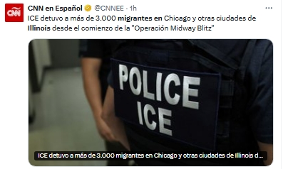 El Departamento de Seguridad Nacional (DHS) informó que el Servicio de Inmigración y Control de Aduanas (ICE) y la Patrulla Fronteriza de Estados Unidos han detenido a más de 3.000 migrantes en Chicago y en todo Illinois desde el inicio de la “Operación Midway Blitz”, lanzada por la administración Trump el 8 de septiembre.
