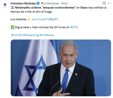 Netanyahu ordena ataques contundentes contra Gaza pese a la tregua