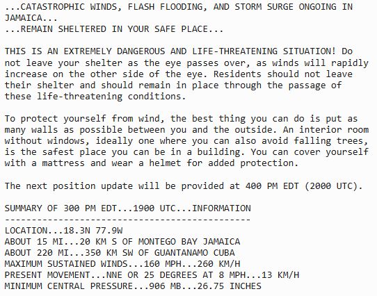 Con vientos sostenidos superiores a los 305 km/h y una presión mínima cercana a 885 hPa, Melissa solo es superado por el huracán Wilma (2005) en términos de fuerza.