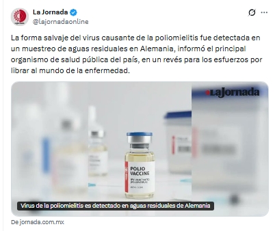 El Instituto Robert Koch (RKI), principal organismo de salud pública de Alemania, informó sobre la detección del poliovirus salvaje tipo 1 (WPV1) en muestras de aguas residuales, lo que representa un retroceso en los esfuerzos globales para erradicar la polio.