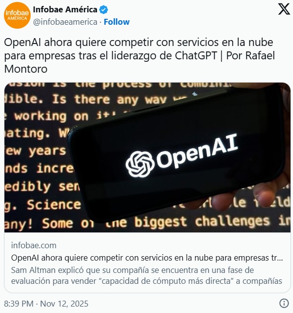 OpenAI se prepara para diversificar y expandir su oferta más allá del desarrollo de modelos de inteligencia artificial y su popular asistente ChatGPT. Sam Altman, director ejecutivo de la compañía, adelantó que la empresa está explorando la posibilidad de ofrecer capacidad de cómputo en la nube tanto para empresas como para usuarios particulares.