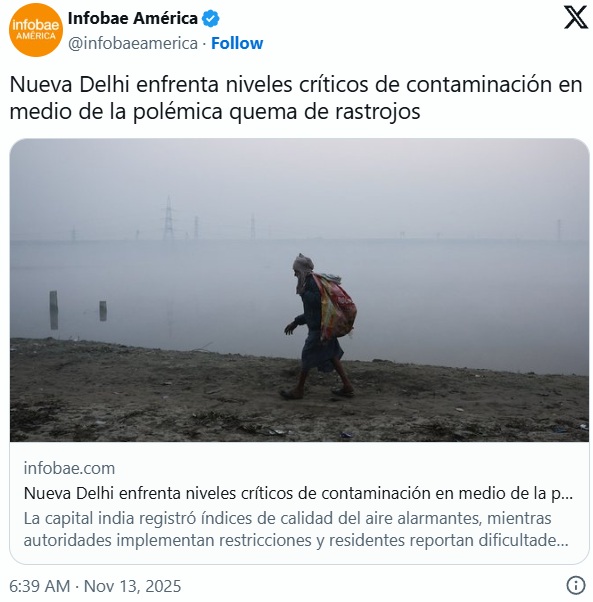 Nueva Delhi enfrenta niveles críticos de contaminación