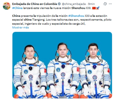 La misión, integrada por los taikonautas Zhang Lu, Wu Fei y Zhang Hongzhang, se acoplará al módulo central Tianhe de la estación espacial Tiangong, conformando una combinación de tres naves y tres módulos, según informó la Agencia Espacial Tripulada de China.