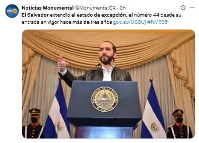 El Salvador amplía por 44ª vez el régimen de excepción contra las pandillas