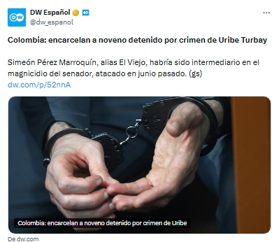 Un juez colombiano ordenó prisión para Simeón Pérez Marroquín, alias “El Viejo”, señalado como intermediario entre los autores intelectuales y el grupo criminal que ejecutó el atentado contra el precandidato presidencial Miguel Uribe Turbay, quien falleció el 11 de agosto.