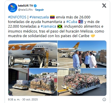 Venezuela envía ayuda humanitaria a Jamaica y Cuba tras el huracán Melissa