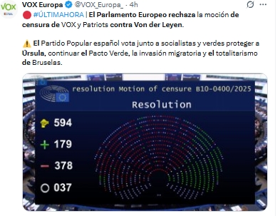 Con estos resultados, Von der Leyen mantiene su cargo al frente de la Comisión Europea, consolidando el apoyo mayoritario del Parlamento en medio de un contexto político europeo marcado por tensiones ideológicas y desafíos institucionales.