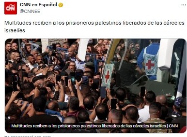 Miles de personas se congregaron en la Ribera Occidental para recibir a los prisioneros palestinos liberados de cárceles israelíes como parte del acuerdo de alto el fuego negociado por Estados Unidos.
