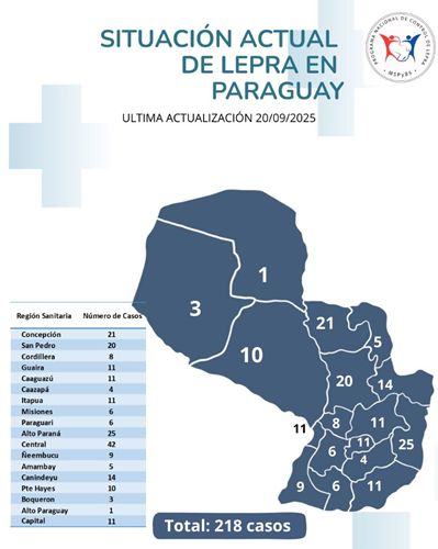 El Ministerio de Salud Pública y Bienestar Social de Paraguay informó que se han registrado 218 casos de lepra en lo que va del año, una cifra que mantiene una tendencia “estable” en comparación con años anteriores.
