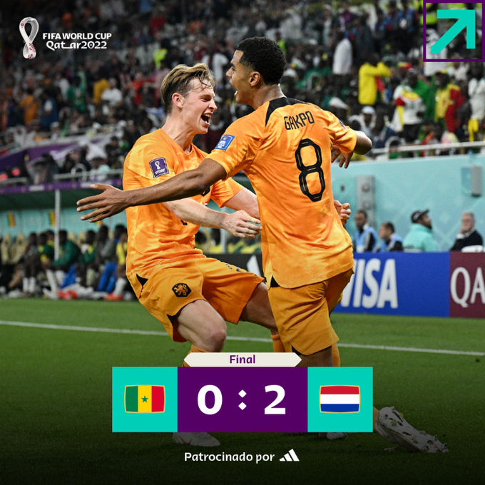 ¡Cody Gakpo anotó en su debut mundialista tras rematar un gran centro de Frenkie de Jong!