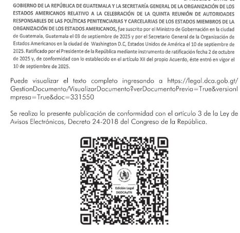 ACUERDO ENTRE EL GOBIERNO DE LA REPÚBLICA DE DE GUATEMALA Y LA SECRETARÍA GENERAL DE LA ORGANIZACION DE LOS ESTADOS AMERICANOS RELATIVOS A LA CELEBRACIÓN DE LA QUINTA REUNIÓN DE AUTORIDADES RESPONSABLES DE LA POLÍTICAS PENITENCIARIAS Y CARCELARIAS DE LOS ESTAMOS MIEMBROS DE LA ORGANIZACIÓN DE LOS ESTADOS AMERICANOS